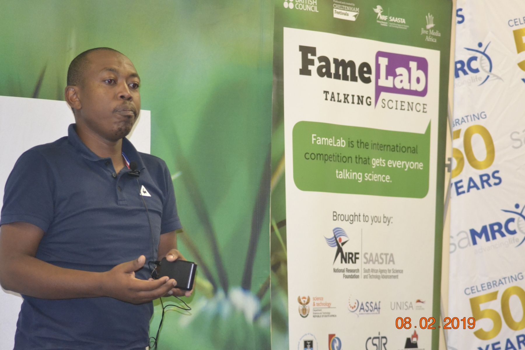 On Friday, 8thFebruary, the Centre of Excellence for Biomedical Tuberculosis (TB) Research (CBTBR) and South African Medical research Council (SAMRC) Centre for TB Research within the Division of Molecular Biology and Human Genetics (MBHG) at Stellenbosch University (SU), together with Jive Media Africa co-hosted the 2019 FameLabSA science communication and public speaking heat at the SAMRC headquarters. A total of 13 participants, from various disciplines within SU and SAMRC research units, took part in the FameLabSA heat. Each were given just three minutes to present their research to the judges and audience in a simple and understandable manner. Participants were judged according to talk content, clarity and charisma. The judges were Prof Nox Makunga from the Department of Botany and Zoology at SU and Paul Kennedy, a science communicator from Science Link and volunteer at SciBraai. Stephanie Lathe, a Master’s student within the Division of Clinical Anatomy at SU, won the competition. Sedzani Ndou, a Master’s student from the Immunology research group within MBHG, and Katrin Smith, a Master’s student from the Animal TB within MBHG, tied in second place. As the winner of the FameLabSA heat, Stephanie will represent SU at the national FameLab final in Gauteng in May. She will compete against 19 other FameLabSA finalists from all other heats hosted within South Africa. All the finalists will receive additional training in science communication sponsored by the British Council and the South African Agency for Science and Technology Advancement. The winner of the national final will compete against participants from 30 countries at the international FameLab competition in Cheltenham, UK in June. Stephanie is researching the incidence of narrower pelvic regions within the South African Coloured population, when compared to other population groups, and the surgical difficulties associated with this, thereby impacting health care interventions for this population group. Commenting on her win, Stephanie said, “I’m very excited to have the FameLab Heat and proud to represent Stellenbosch University at the national competition. Science is my passion, and being able to share that passion with others is what keeps the fire alive. Communication, at the end of the day, is how humans form connections, so I would like to thank FameLab for helping me develop my communication skills, and I can’t wait to continue the process if Johannesburg.”[:]